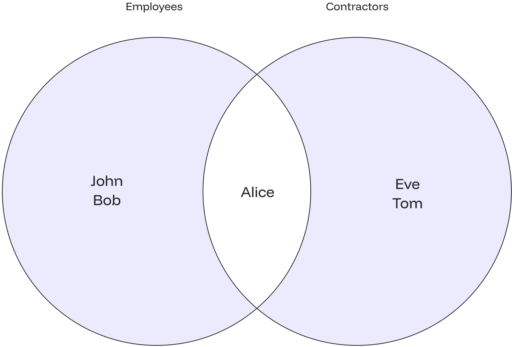 Let’s consider an example of theUNION. Assume we have a table called employees and another table called contractors. We want to retrieve a combined list of names from both tables, excluding duplicates: